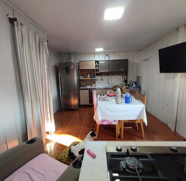 A casa dispõe de 2 quartos aconchegantes, proporcionando um ambiente ideal para famílias ou até mesmo para um casal que deseja espaço extra. O imóvel conta com 1 banheiro funcional, sala e cozinha integradas, além de uma área de lavação bastante prática. A garagem é ampla e alta, permitindo acomodar veículos maiores e oferecendo mais espaço para armazenamento.